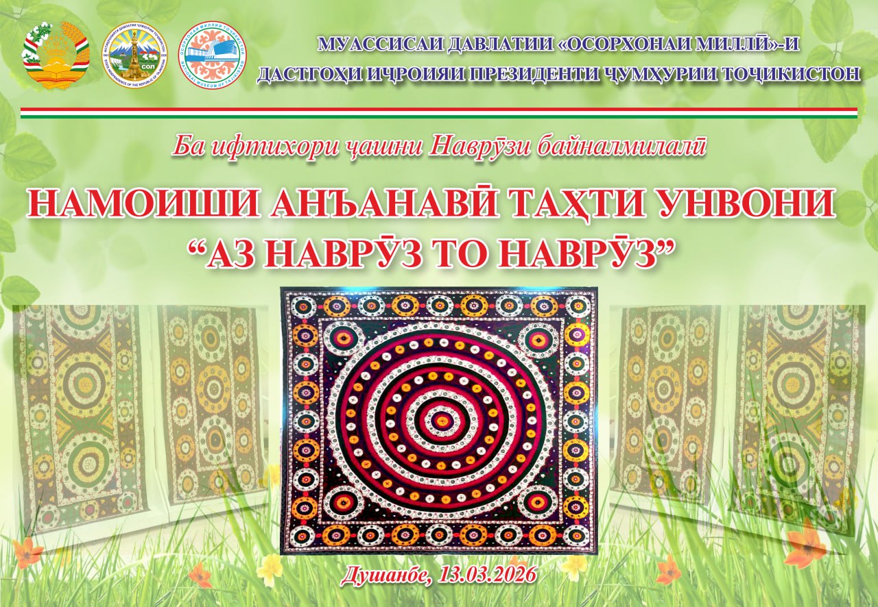 Имрӯз, 13.03.2026 дар Муассисаи давлатии “Осорхонаи миллӣ”-и Дастгоҳи иҷроияи Президенти Ҷумҳурии Тоҷикистон ба ифтихори ҷашни Наврӯзи байналмилалӣ намоиши анъанавӣ таҳти унвони “Аз Наврӯз то Наврӯз” ифтитоҳ гардид.