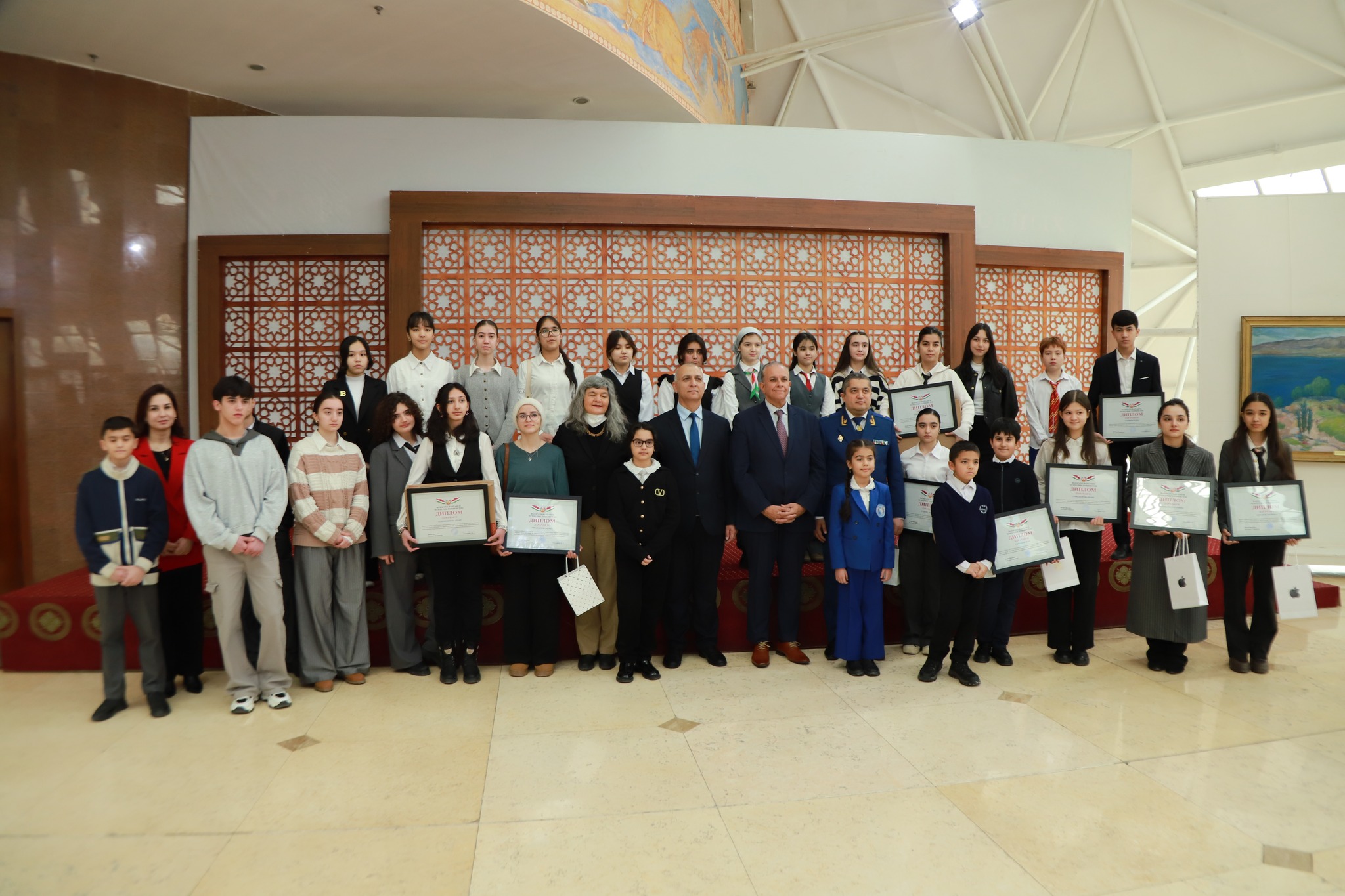 Дар фарҷоми чорабинӣ муаллифони асарҳо — мусаввирони ҷавон барои саҳми арзандаашон дар тарғиби ғояҳои сулҳ, ватандӯстӣ ва худогоҳии миллӣ бо туҳфаҳо ва ҷойҳои ифтихорӣ сарфароз гардонида шуданд.