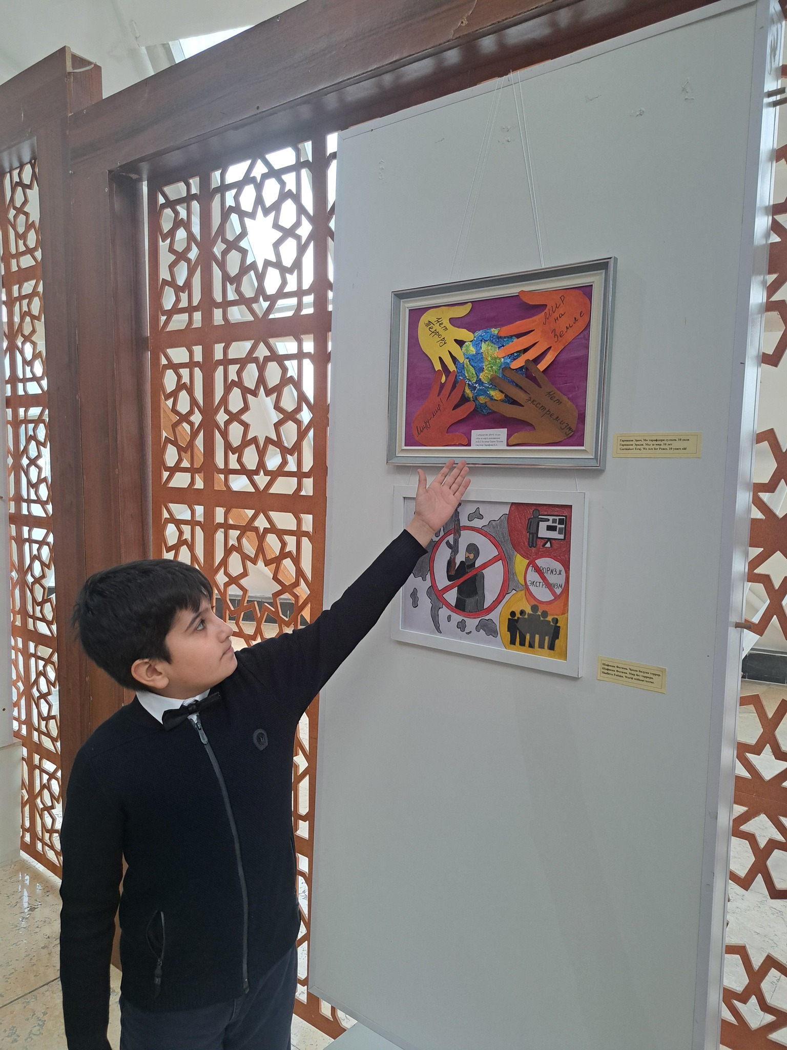 Дар идомаи чорабинӣ иштирокчиён аз намоиши асарҳои рассомони ҷавон дидан карданд. Асарҳо бо забони санъат хатари терроризму экстремизм, паёмадҳои фоҷеабори он ва аҳамияти сулҳу ваҳдати миллиро инъикос менамуданд.